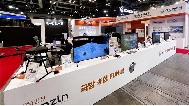 펀진은 이번 전시에서 전자기스펙트럼 정찰 시스템 ‘KWM-Ocelot’과 실시간 첩보 연동이 탑재돼 더 진화한 AI 참모 시스템 ‘KWM(Kill-Web Matching)’을 중심으로 부스를 구성했다.