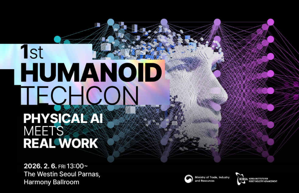 한국로봇산업진흥원(이하 진흥원)이 오는 2월 6일(금) 서울 웨스틴 파르나스 호텔에서 ‘제1회 Humanoid TechCon(휴머노이드 테크콘)’을 개최한다고 밝혔다. 이번 행사는 휴머노이드 로봇이 기술 시연 단계를 넘어 산업 현장에 본격 적용되는 흐름 속에서, 규제·표준·인증·데이터·생태계 등 상용화 단계의 핵심 실무 이슈를 종합적으로 논의하기 위해 마련됐다.